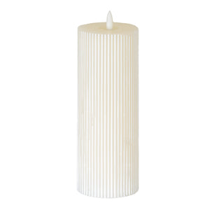 Bring warmth and ambiance to your retail space with this exceptional wax LED candle featuring an intricately textured ribbed surface that adds depth and visual interest to any display. The authentic wax construction combines with an innovative amber LED flame that creates a safe, maintenance-free alternative to traditional candles, perfectly replicating the gentle flicker of candlelight without the concerns of open flames or melting wax. This distinctive piece pairs beautifully with the coordinating Natural Glow collection, including tealight sets and stone-textured variants, while wicker lanterns provide an ideal complementary accent to create layered lighting displays that will appeal to design-conscious consumers. The built-in timer function offers practical convenience that your customers will appreciate, making this an essential addition to home décor collections and wedding accessory offerings. Height 20cm Width 7cm Depth 7cm