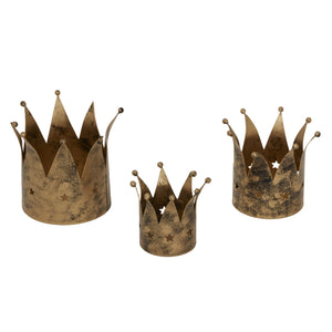 Gloriously adorned with intricate detailing, this Antique Gold Crown Candle Holder radiates regal magnificence into any space. The meticulously sculpted crown design showcases elaborate embellishments that catch and reflect light, creating a warm, ambient glow when paired with your favourite candle. Part of our luxury decorative collection, this 10cm³ statement piece functions beyond mere illumination—it's an artistic focal point that commands attention in living areas, dining spaces, or bedrooms. The rich antique gold finish imparts a sense of heirloom quality, evoking the opulence of historical royal courts while remaining thoroughly current in contemporary settings. This candle holder pairs beautifully with other items in our gold-accented collection, particularly the Silver Smoked Midnight Glass Top Tall Candle Pillar Holder, creating a harmonious tableau of mixed metallics that feels both curated and intentional. For seasonal styling, consider coupling with our Natural Wooden Star Tealight Candle Holders or Snowflake designs for a festive winter arrangement that balances rustic elements with refined glamour. The weight and substance of this piece communicate quality craftsmanship to discerning customers, while its ornate yet versatile aesthetic ensures it complements numerous interior styles from maximalist to understated luxury. Trade customers will appreciate how this crown design appeals to consumers seeking distinctive decorative elements with narrative potential—objects that not only serve functional purposes but also convey personality and taste. The royal motif resonates with clients drawn to symbolic decorative pieces, and the candle holder's generous proportions ensure it makes a substantial impression whether displayed singly or grouped with complementary accessories. This is a piece that encourages customers to create layered, thoughtful interiors where every element has been selected with care and consideration. Height 10cm Width 10cm Depth 10cm