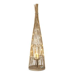 Designed to create a warm and inviting ambience, the Large Conical Wicker Lantern With Glass Holder & LED Lights blends rustic charm with an contemporary edge. Its tall conical profile, woven in a natural wicker pattern, allows soft, dappled light to filter beautifully through the textured form, casting subtle patterns across surrounding surfaces. The integrated glass holder holds an LED light that illuminates without open flame, making it both visually appealing and practical for retail customers seeking attractive yet safe decorative lighting solutions. Exemplifying the character of the broader wicker lantern collection, it sits comfortably amongst both traditional and contemporary settings, adaptable for a wide range of interiors from cosy living spaces to garden rooms and sheltered terraces. The intricate weave work not only enhances its tactile appeal but also speaks to a standard of design that balances durability with aesthetic presence, making it a reliable staple for home accessory ranges. Retailers can encourage customers to combine it with complementary shapes from the same series, such as the Large Round Willow Lantern, Medium Peardrop Wicker Lantern, or Cylinder Wicker Lantern, allowing them to create layered visual interest and varied height arrangements in display areas or home environments. For an even more textured look, pairing with a Large Loop Handle Tray can enhance its presence on dining tables or console styling arrangements. Offering a harmonious mix of natural materials and functional design, it goes beyond a simple lighting accent to become a key decorative feature that can be styled in multiples or as a standout piece within curated accessory collections. Its height and shape provide strong vertical definition, which works particularly well for creating statement arrangements in shop displays, while its neutral-toned wicker ensures easy integration with a wide spectrum of colour palettes and room schemes. The lantern’s compatibility with LED lighting provides added selling appeal for eco-conscious customers who want energy efficiency without compromising on mood lighting. Ideal for long-term retail stocking, it delivers both design consistency across the range and individual standout value, ensuring repeat interest from customers seeking to expand or refresh their home décor with cohesive yet distinctive pieces. Height 130cm Width 32cm Depth 32cm