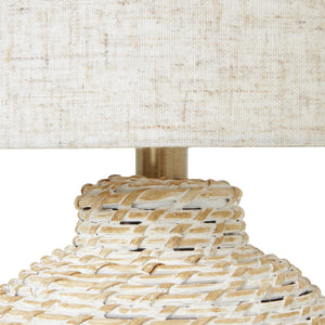 The White Wash Small Bulbous Wicker Table Lamp offers a seamless blend of rustic charm and modern elegance. With its intricate wicker design and linen shade, it provides a warm, inviting glow. Ideal for coastal or bohemian interiors, it pairs well with natural textures and soft, neutral palettes. Perfect for shops seeking unique, versatile decor. Height 35cm Width 20cm Depth 20cm