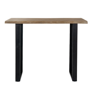 Crafted from light acacia wood, this bar table stands as a testament to modern design sensibilities while maintaining authentic natural detailing. The distinctive live edge profile creates an organic silhouette that celebrates the wood's inherent characteristics, offering a perfect fusion of raw beauty and refined craftsmanship. Part of the distinguished Live Edge Collection, this bar table demonstrates outstanding attention to detail in its construction, with the natural grain patterns and unique wood markings preserved to tell their own story. The light finish amplifies the material's natural luminosity while protecting its surface for lasting durability. Each piece within this collection bears singular characteristics, ensuring no two tables are exactly alike. For enhanced aesthetic cohesion, consider pairing this bar table with select decorative elements from the Live Edge range, such as wall mirrors, table lamps, or metallic wall art pieces that echo its contemporary yet organic aesthetic. The table's substantial proportions make it an ideal centrepiece for social spaces, while its considered height delivers perfect functionality for casual dining or entertainment areas. This piece resonates particularly well with both minimalist and industrial-inspired interior schemes, where its organic forms provide an appealing contrast to linear architectural elements. Height 100cm Width 130cm Depth 70cm